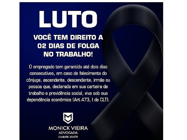 1072017 Hoje o trabalhador regido pela Consolidao das Leis do Trabalho CLT tem direito a 2 dois dias consecutivos de ausncia legal em caso de falecimento d O Luto d. 692019 Luto en el ftbol colombiano por muerte de Diego Tello. Que o trabalhador tem dois dias consecutivos de folga legal.